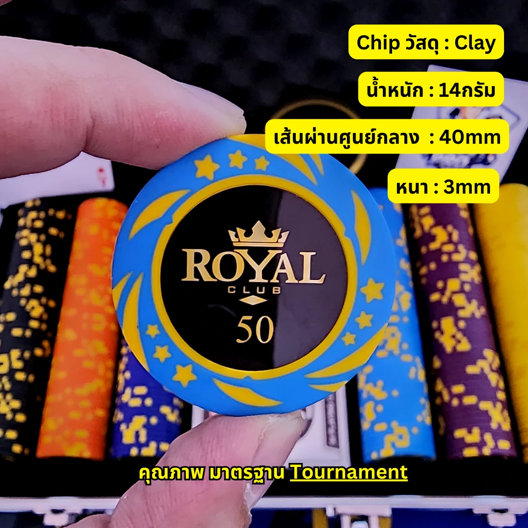 Chip poker รุ่น Royal Club มาตรฐาน tournament วัสดุ : Clay น้ำหนัก : 14กรัม เส้นผ่านศูนย์กลาง : 40mm หนา : 3mm